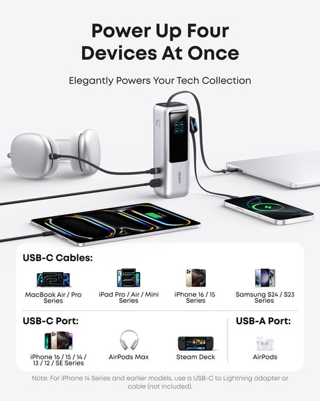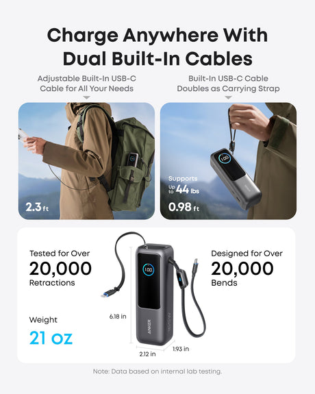 Anker Laptop Power Bank (25K, 165W, Built-In and Retractable Cables)