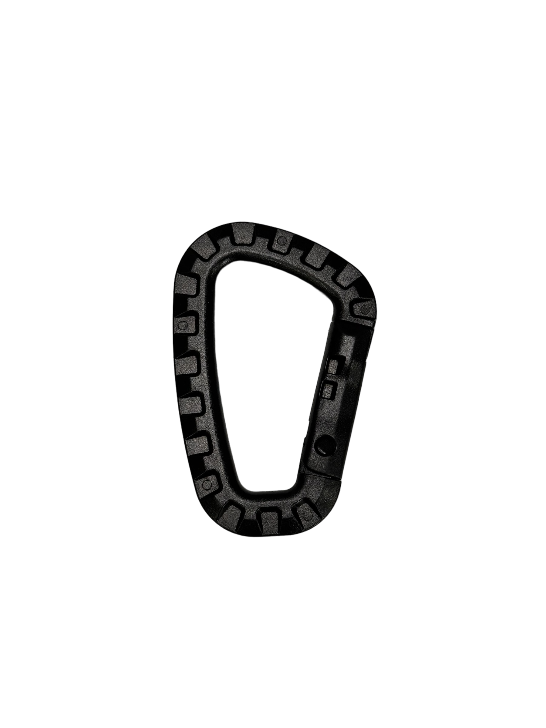 This Black Plastic Carabiner Clip has a compact size, measuring 3.4 inches in length and 1 inch in width. The carabiner clip design allows for easy attachment to backpacks, keychains, and other gear, making it a versatile accessory for outdoor activities and everyday use.