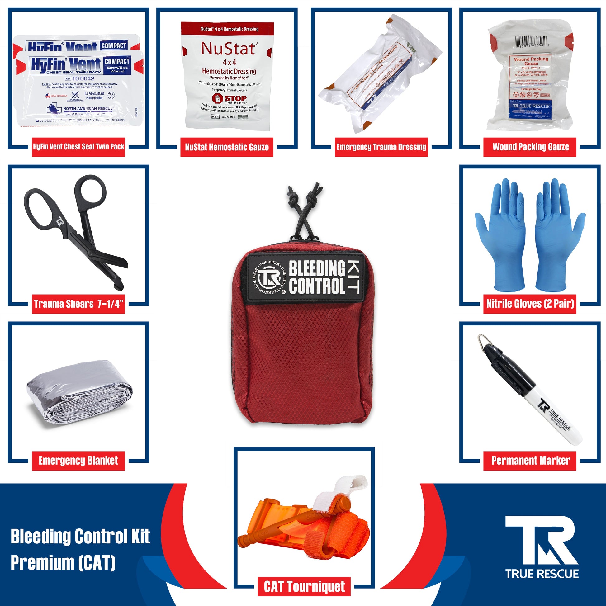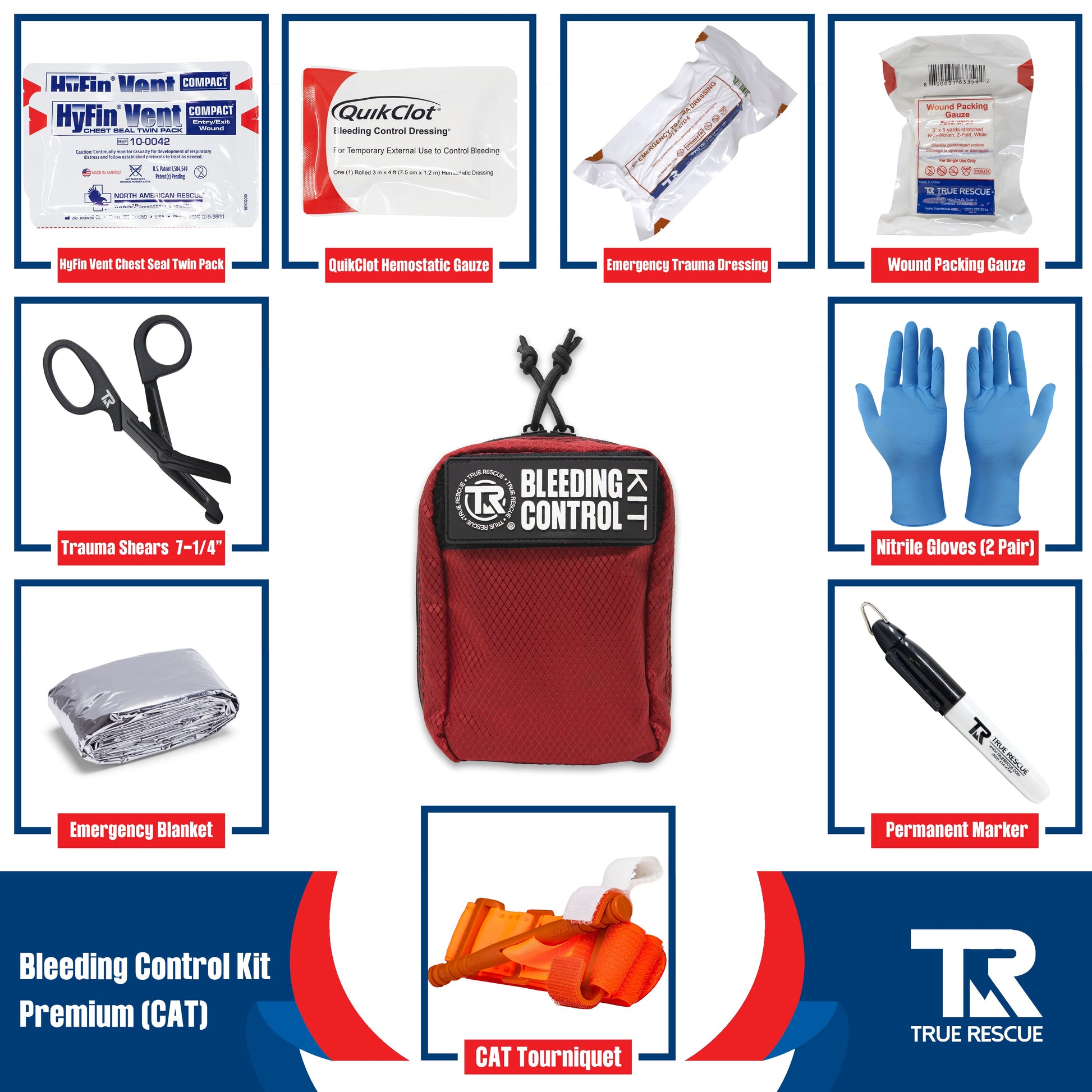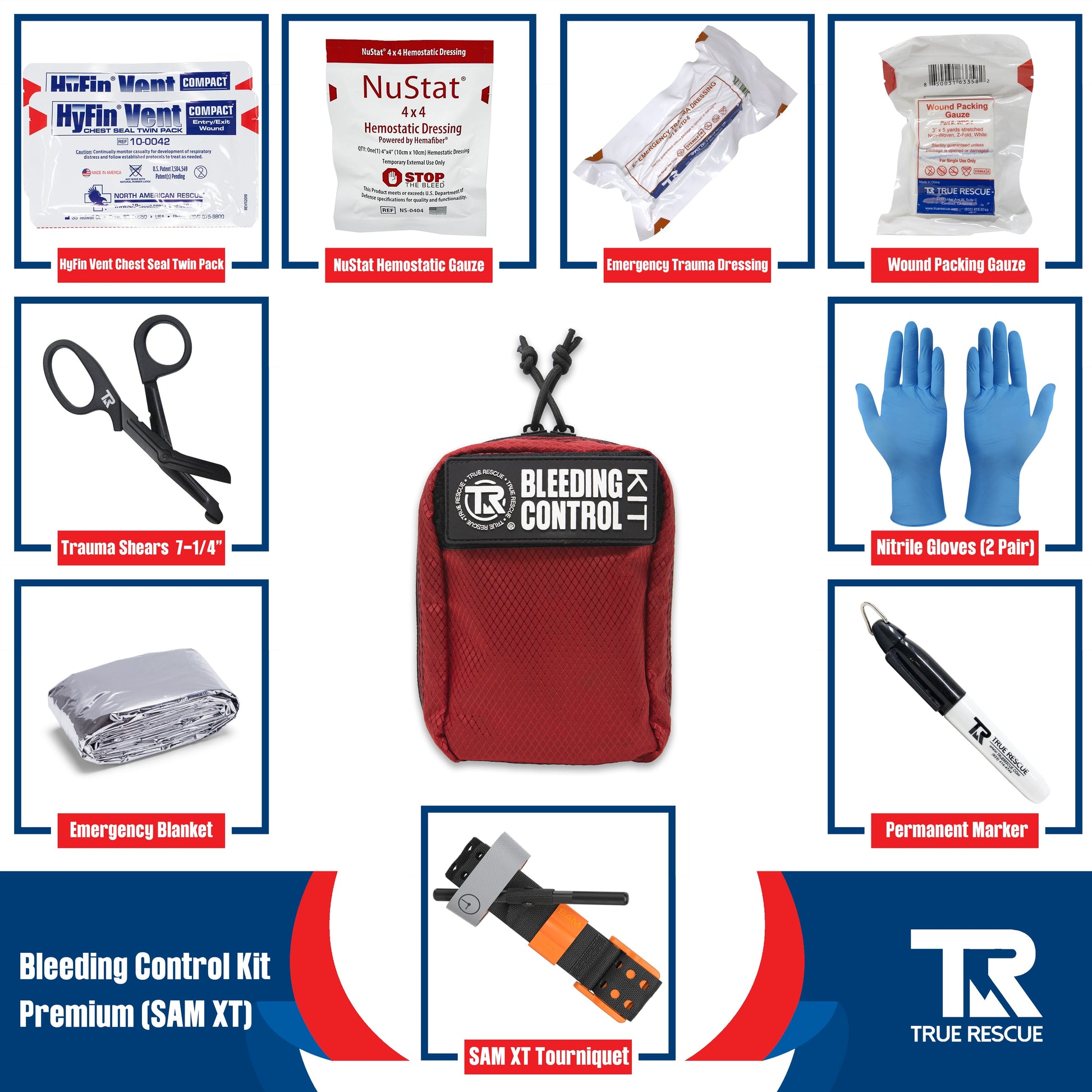 Get the tools you need to save lives when you’re faced with unexpected emergencies. True Rescue's Bleeding Control Kit comes in three different variations: Standard, Intermediate, & Premium. Each kit builds upon the last, providing additional life-saving tools to help control traumatic bleeding. Whether you are a civilian preparing your home, school, or place of business; or a professional working in the military, law enforcement, or EMS, you can rest easy knowing there is a kit here for you!