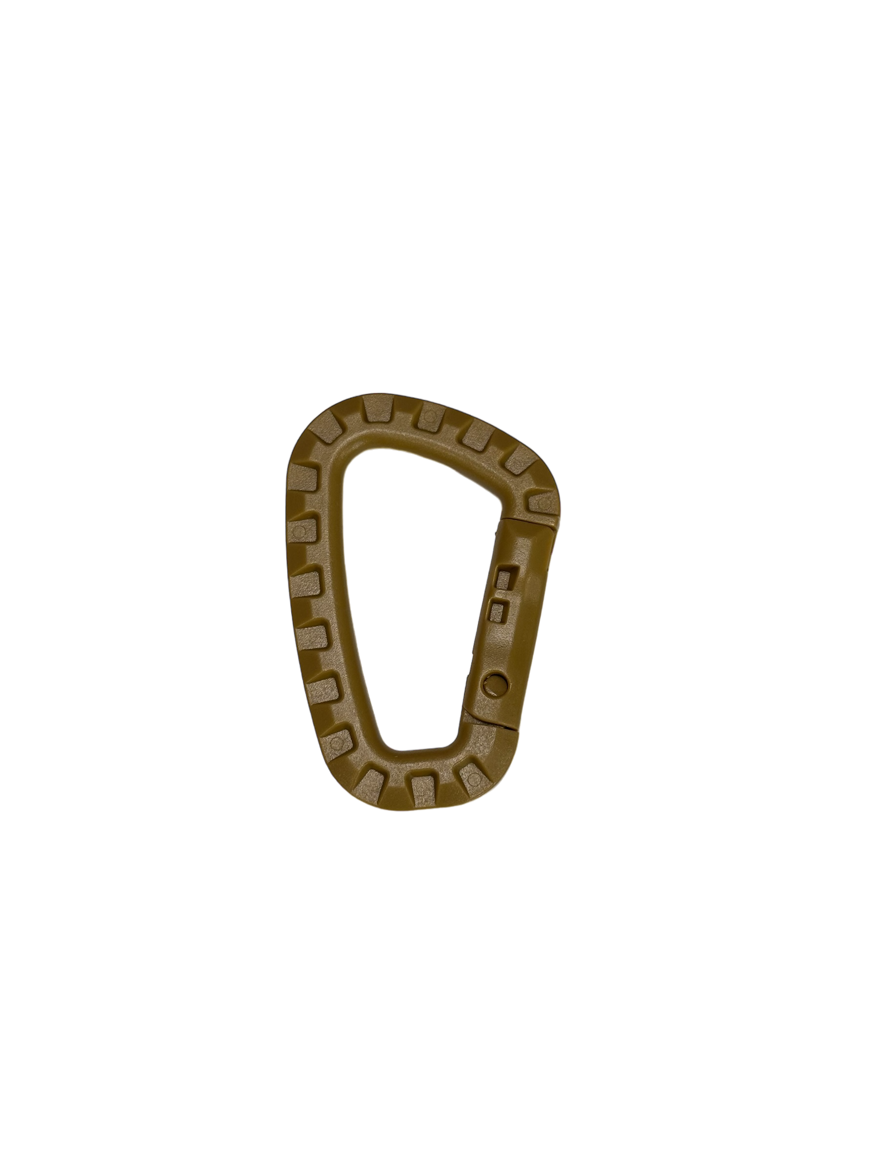 This Coyote Tan Plastic Carabiner Clip has a compact size, measuring 3.4 inches in length and 1 inch in width. The carabiner clip design allows for easy attachment to backpacks, keychains, and other gear, making it a versatile accessory for outdoor activities and everyday use.