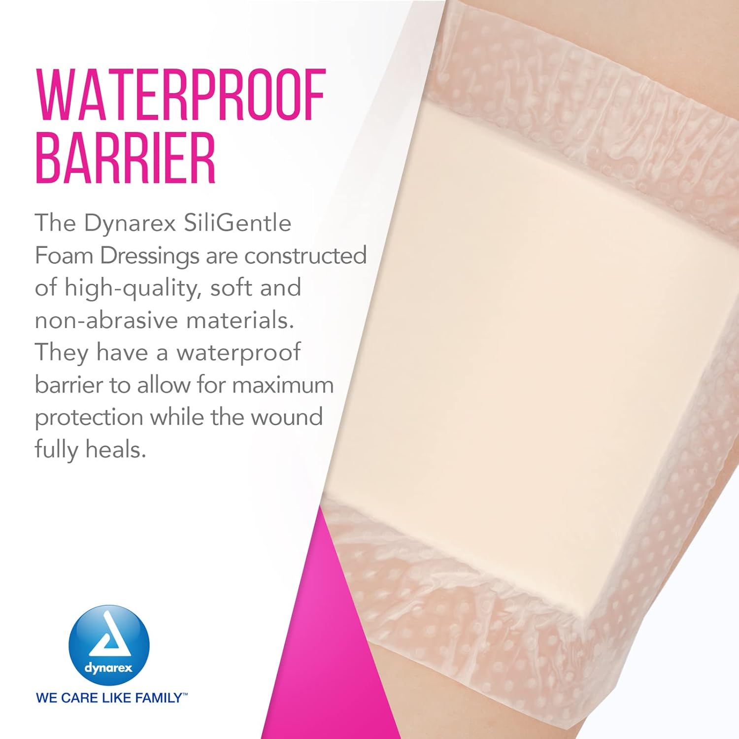 Dynarex SiliGentle - Silicone Bordered Foam Dressing, 10ea/bx, 12bxs/cs (120 Count)