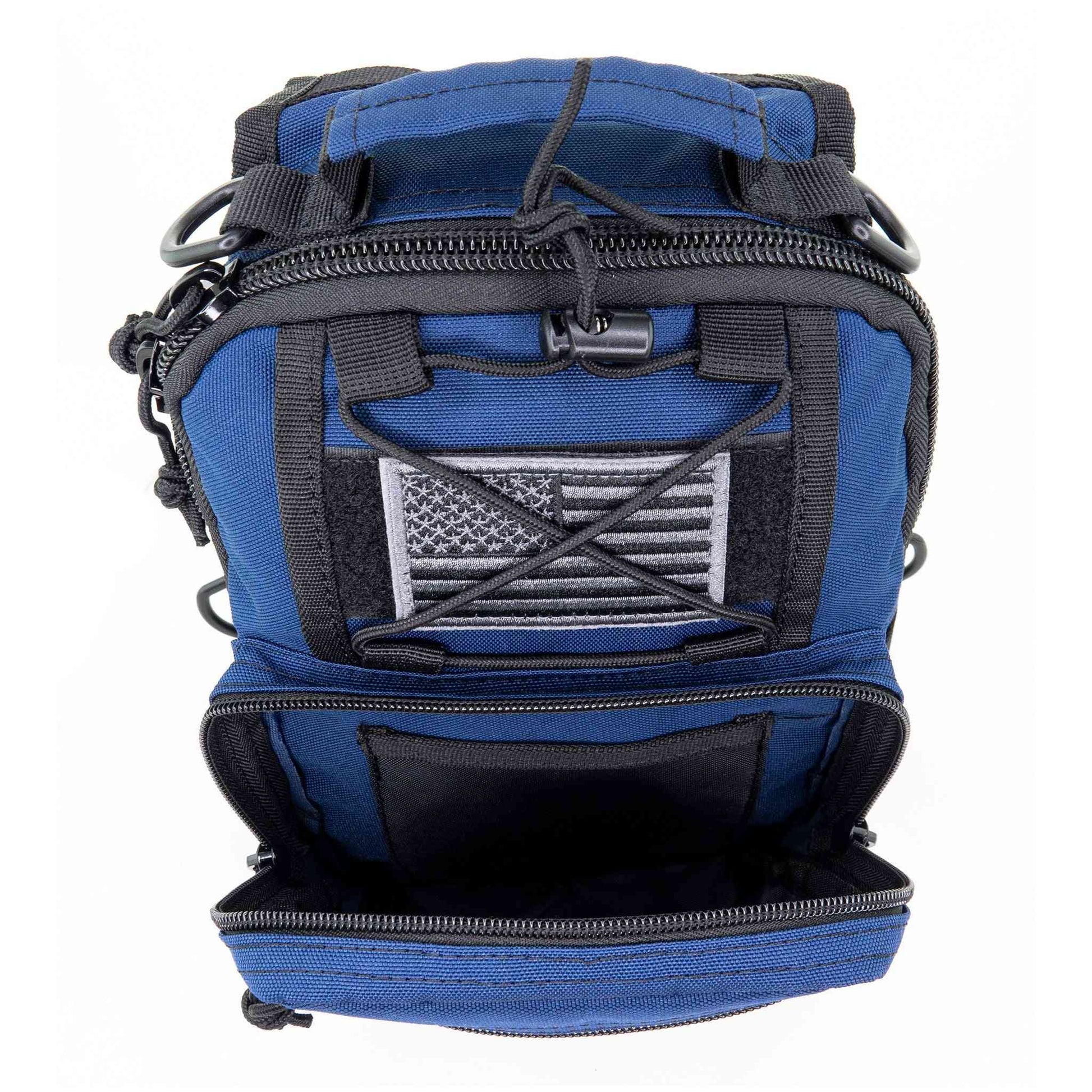 LINE2design’s Sling Backpack is made of the highest quality specialized material and features three zippered compartments, a padded back pocket and interior pockets. Our Tactical Sling Backpack is MOLLE compatible and features strong webbing loops that are ideal for attaching and securing gear. The bag comes in three color choices: black, navy or red and features an interchangeable 2 ¾” x 3 ¼” USA flag patch. The LINE2design Sling Bag Backpack is the perfect bag for Stop the Bleed kits, tactical kits, first responders, police, tactical medics, military, survivalists, hikers, hunters or for individual first aid kit to keep at your desk for medical emergencies. Size: 12” x 9” x 5”