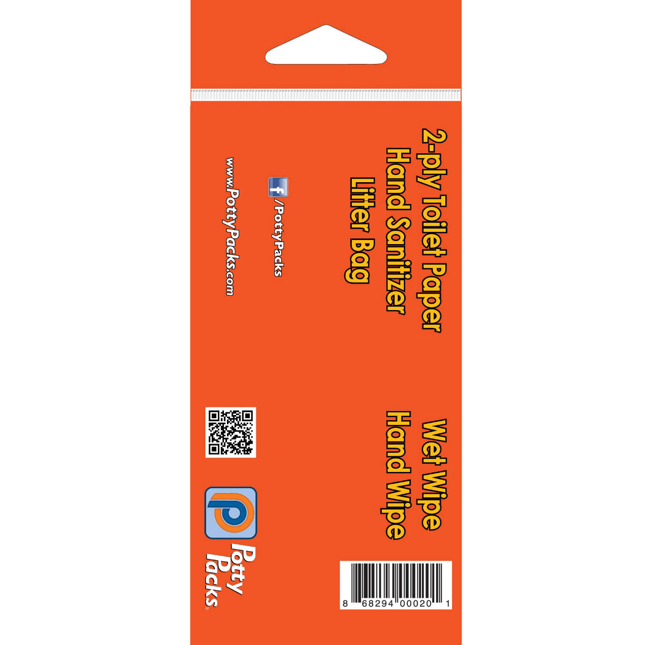 This outdoor toilet pack has everything but the toilet.Included are 4 feet of two-ply toilet paper and wet wipes.The wet wipes are made with Vitamin E and Aloe Vera. Follow up by cleaning your hands with the sanitizer lotion and hand wipes. The disposal bag can be used to not to leave any trace behind.