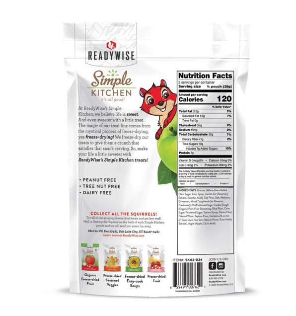 This box includes six pouches of Simple Kitchen's (a ReadyWise Company brand) Old Fashioned Apple Crisp.