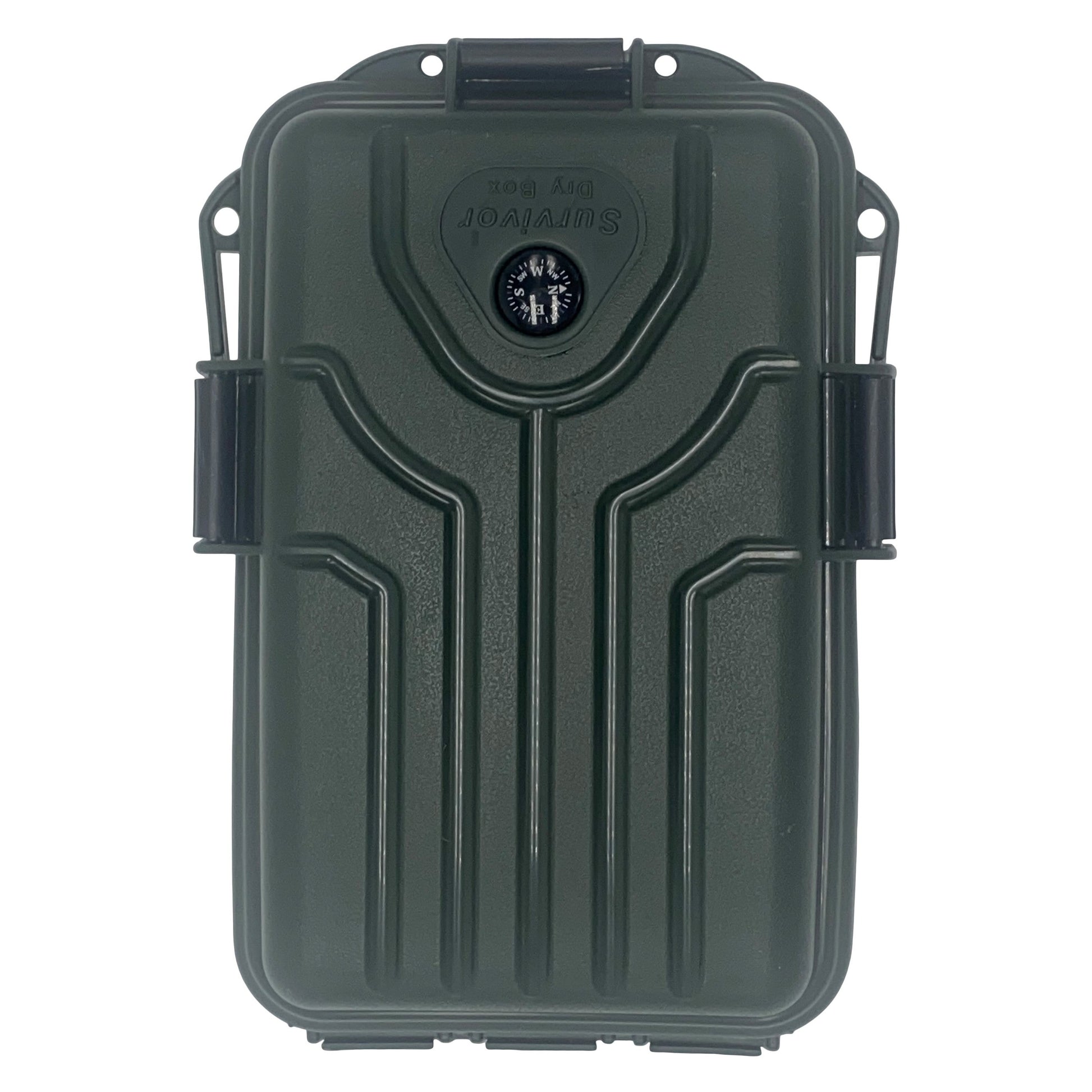 - Survivor Water-Resistant Dry Box with built in button compass and Signal Mirror, Made in the USA