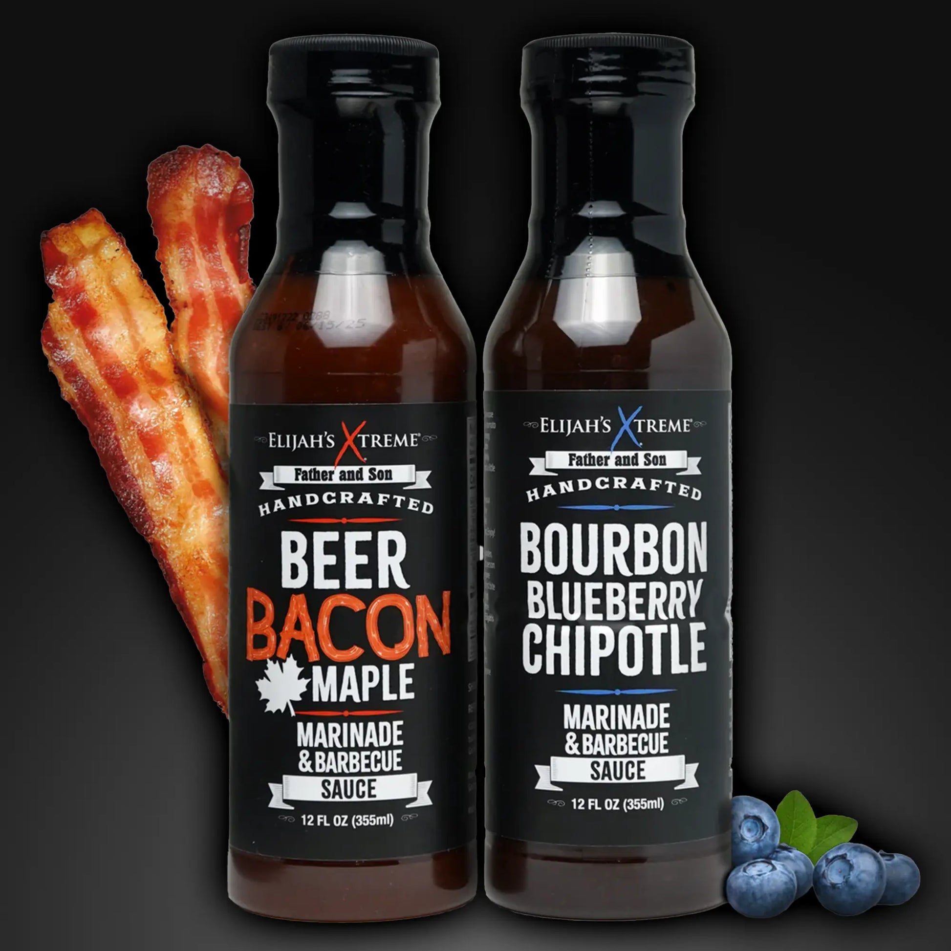 Elijah's Xtreme® Beer Bacon Maple BBQ & Marinade & Bourbon Blueberry Chipotle BBQ Bundle