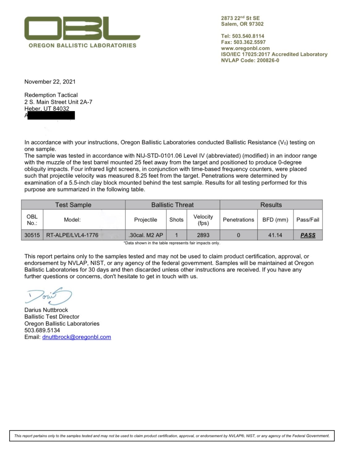 TESTED TO LEVEL IV: This rated to stop armor piercing rounds up to 30-06 Black Tip Armor Piercing Caliber, and calipers below it which includes 5.56, .223, 7.62x39.