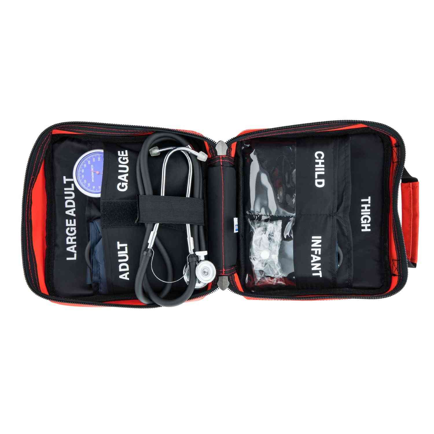 - Best BP Cuff Trauma Kits Heavy-duty, all-impervious, water-resistant, red zippered bag with oversized zipper pulls. Lays flat when open.