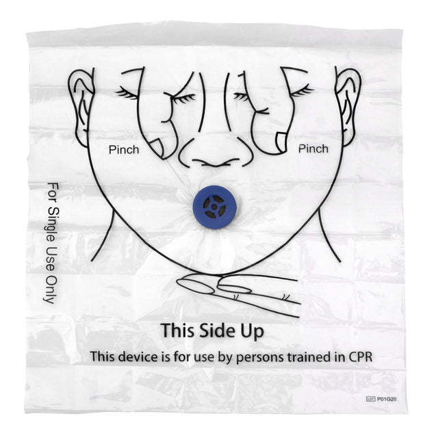 Disposable CPR mask with one-way airway to prevent backflow from the victim.
