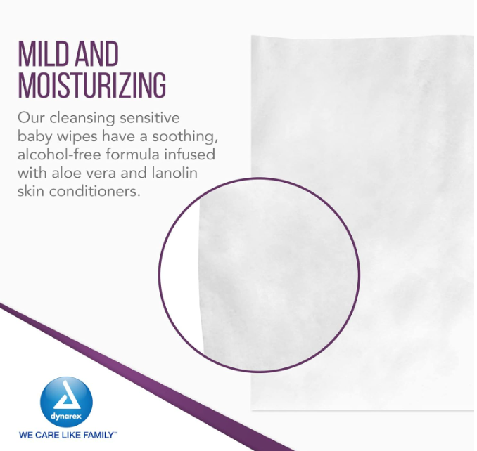Dynarex Baby Wipes are designed for soothing, gentle cleansing while moisturizing skin.
