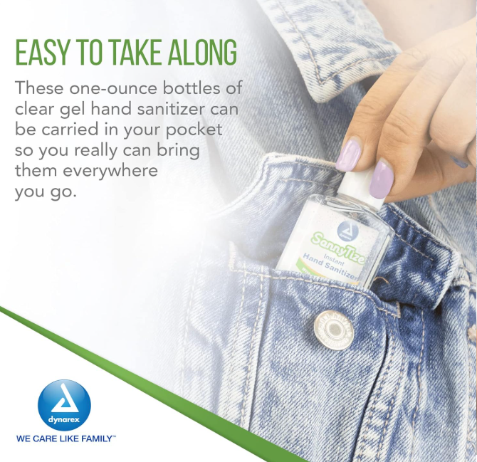 Dynarex Instant Hand Sanitizer, 1 oz. Square Bottles, 24bot/bx, 6bxs/case (144 Count)