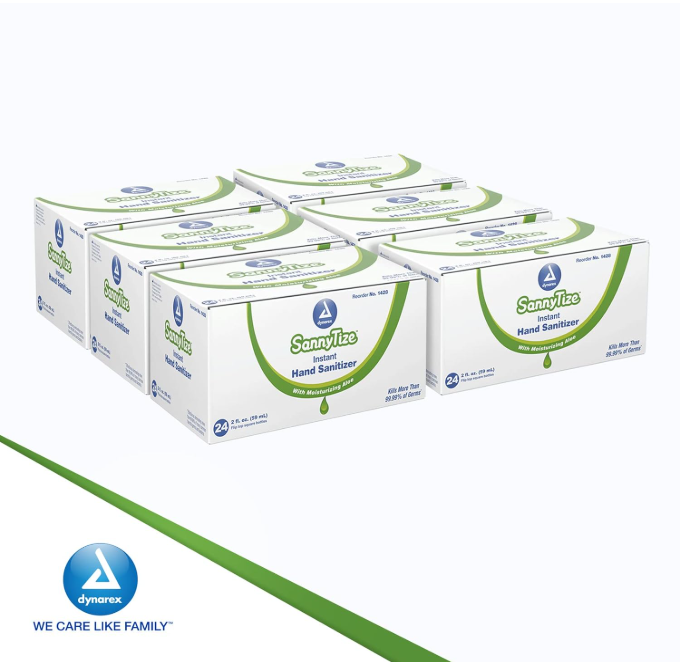 Dynarex Instant Hand Sanitizer, 2 oz. Square Bottle, 24bot/bx, 6bxs/case (144 Count)