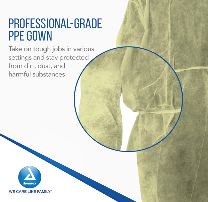 Dynarex Isolation Gowns are professional-grade, disposable garments designed to provide effective protection from germs and cross-contamination. These full-coverage gowns are constructed from lightweight, breathable material and feature sewn seams and extra-long waist ties that can be secured in the front of the body.