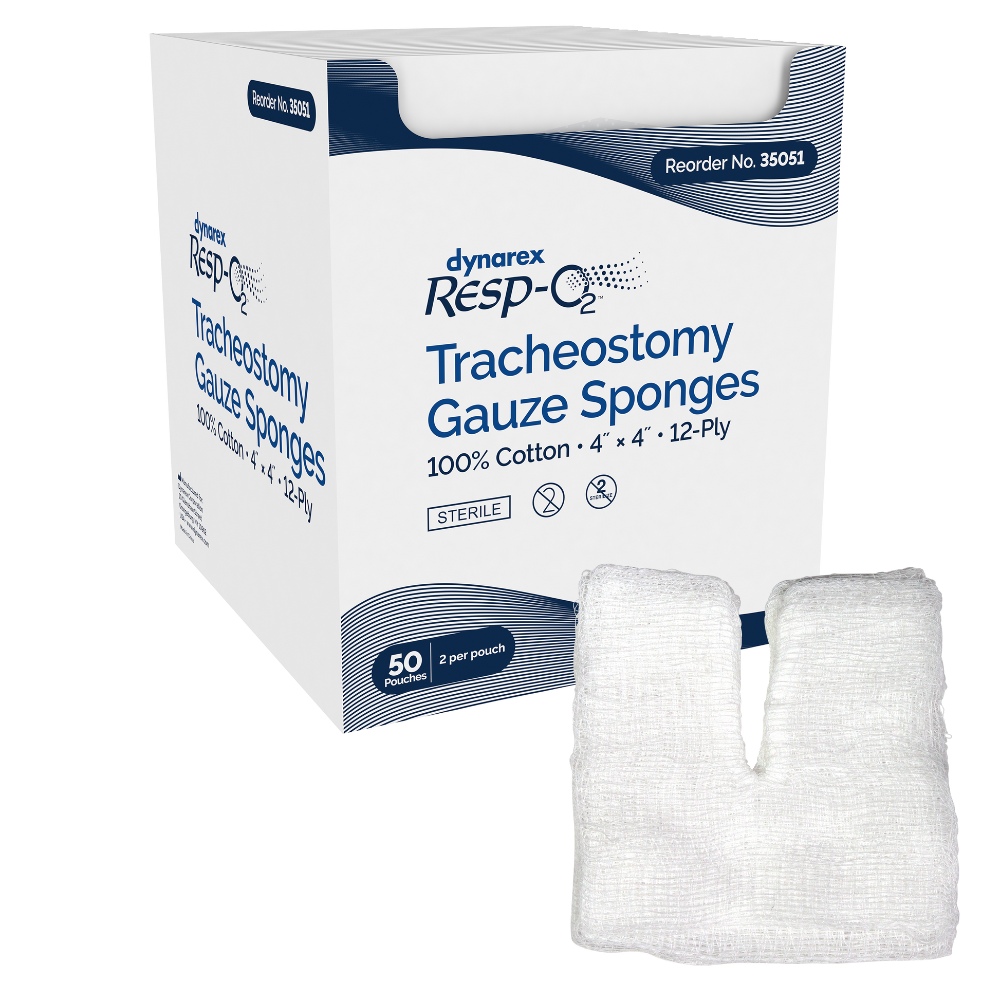 Dynarex Tracheostomy Sterile Drain Sponges - Gauze Sponges, 100% Cotton 4"x4" 2's, 12-Ply (600 Count)