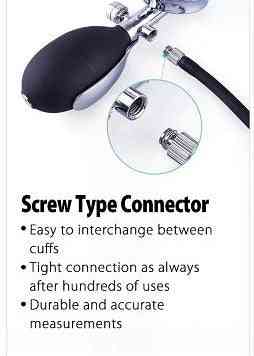 The LINE2design palm sphygmomanometer is the most often used BP gauge used by health care, most accurate and reliable manual blood pressure monitor. Easy to interchange between cuffs. Tight connection as always after hundreds of uses. This Palm Sphygmomanometer is easy to use.