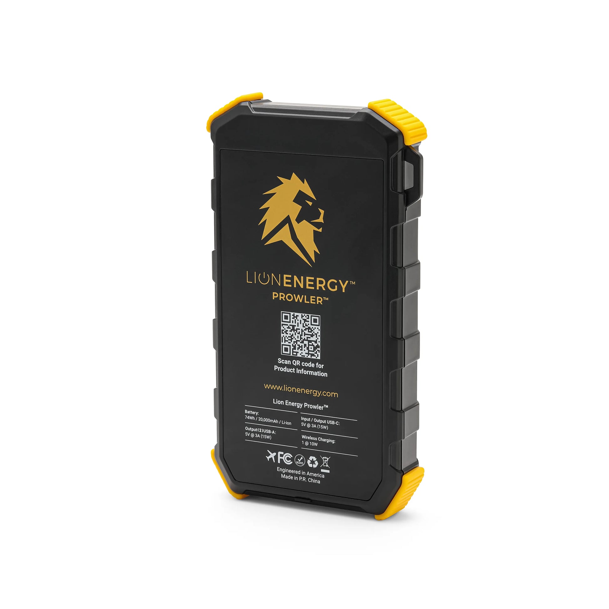 The Lion Prowler™ is a versatile portable power bank designed to keep you connected and prepared. It offers convenient wireless charging for many smartphones, multiple USB ports for powering other devices, plus a built-in flashlight and lamp making it an ideal companion for travel, work, or emergencies.