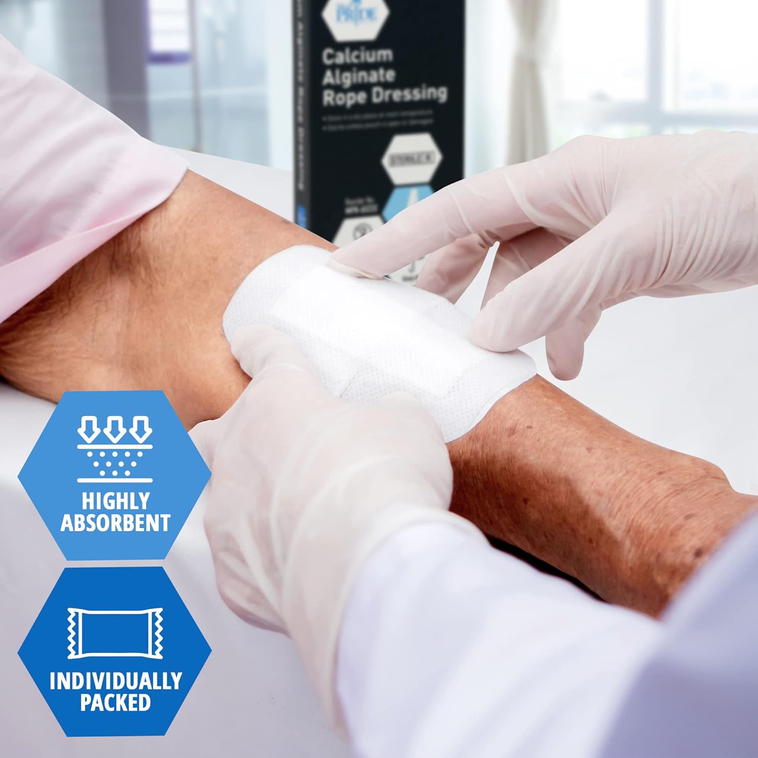 MedPride Calcium Alginate Rope Dressing, Sterile Hydrophilic Wound Dressing Rope for Open Wounds, Burns, Ulcers & Minor Traumas, 3/4"x12" - 5/Pack, Case of 12 (60 Count)
