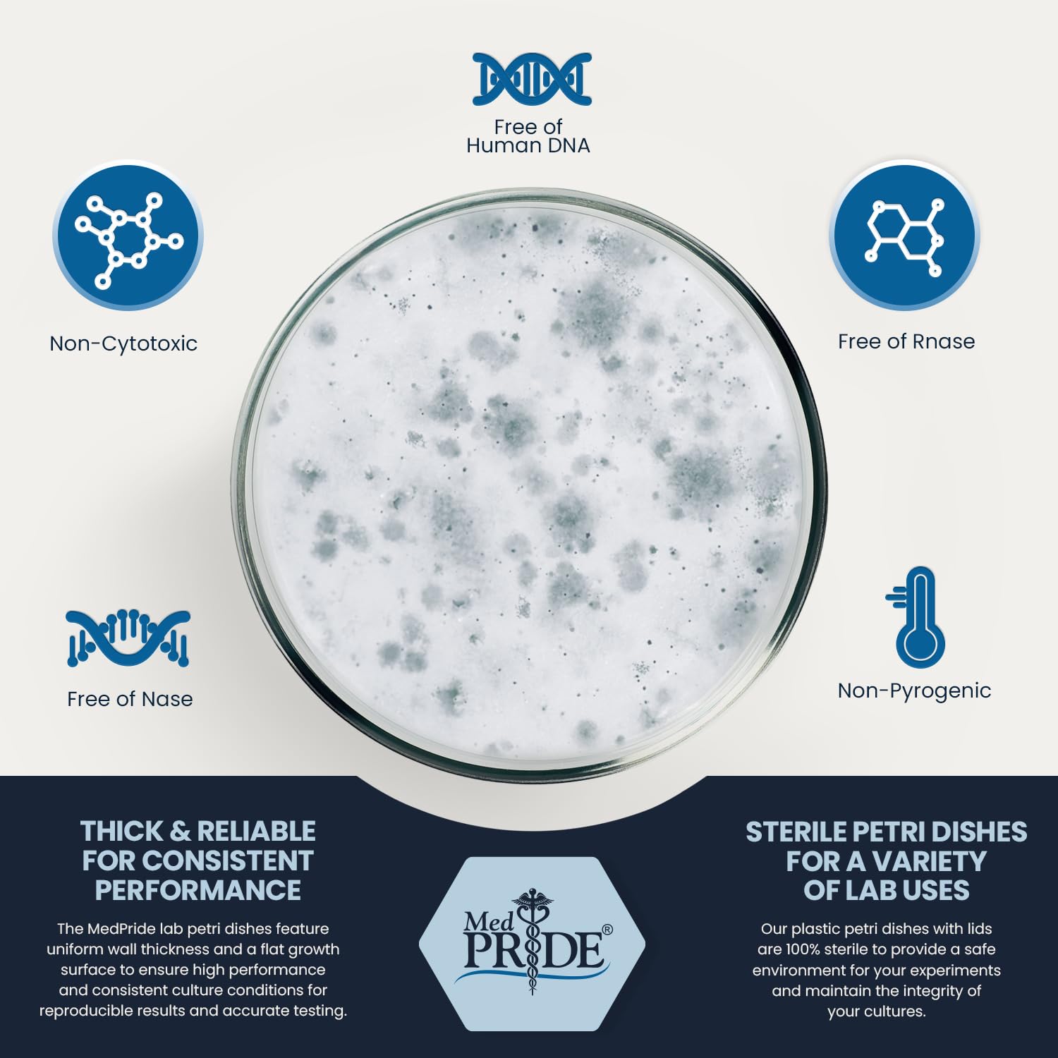 MedPride Stackable Petri Dishes with Lids, Sterile are perfect for a wide range of laboratory applications, from biology and science experiments to blood tests and cell culture work.