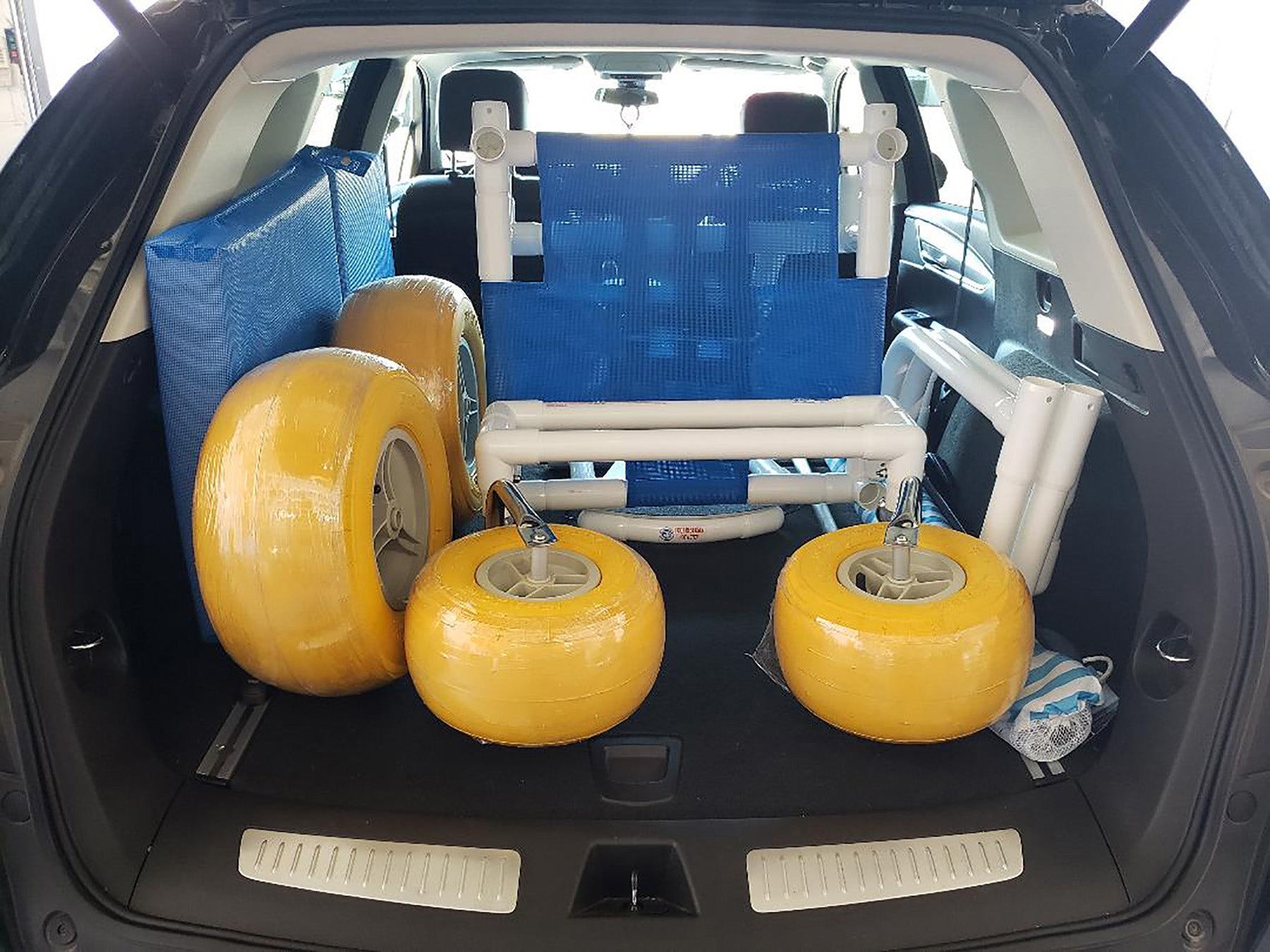 MJM International 722-ATC-YEL All Terrain Beach Wheelchair Heavy Duty Wheels Non-Corrosive Plastic Bearings, 2 Swivel And 2 Rigid Wheels, Padded Cushion Seat, User-Friendly Folding Footrest.