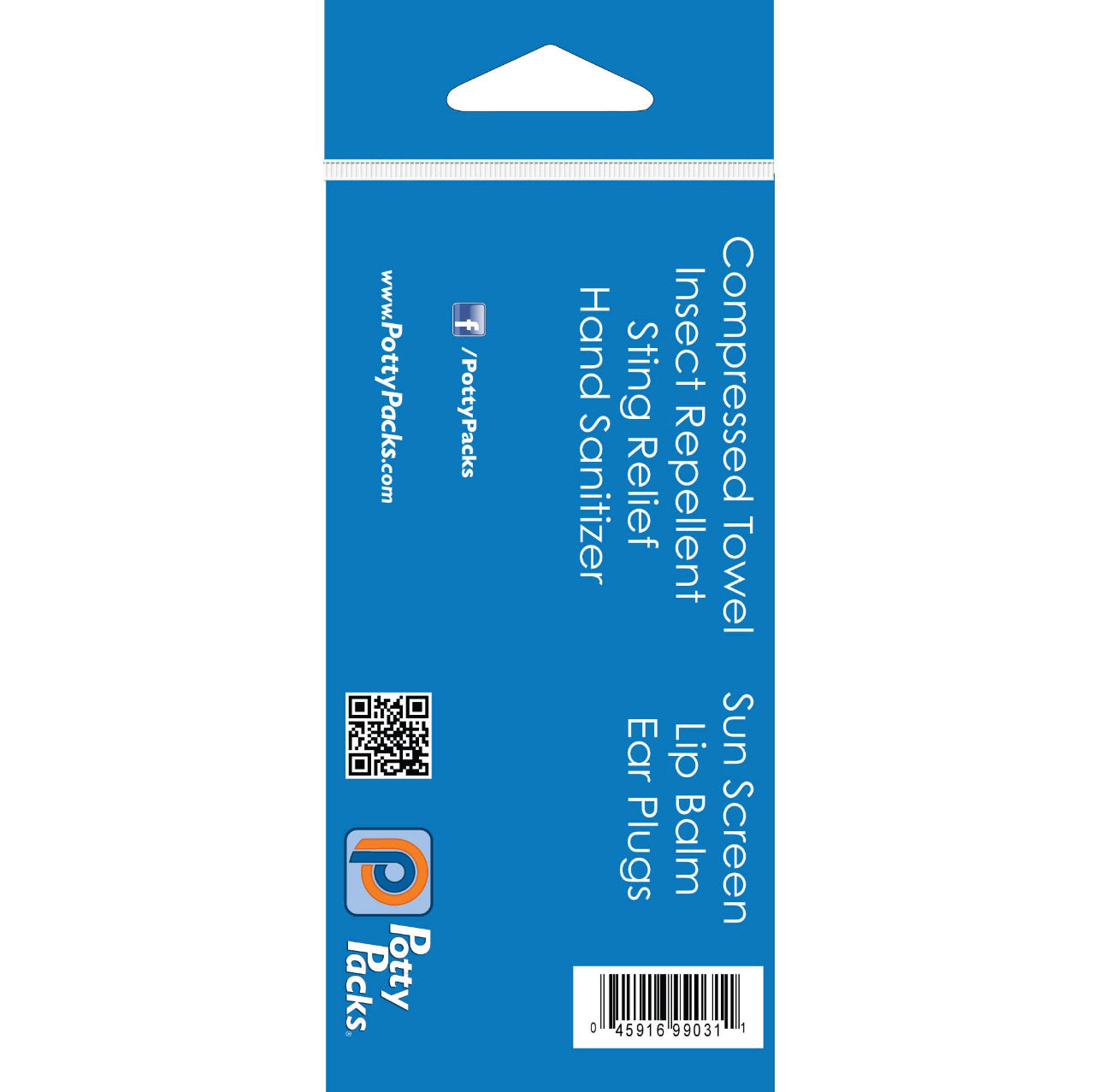 This event pack ensures that you are Always Prepared. Included are sun-screen lotion, insect repellent wipe and sting relief. Ear plugs protect your hearing at concerts. The wet wipe is made with