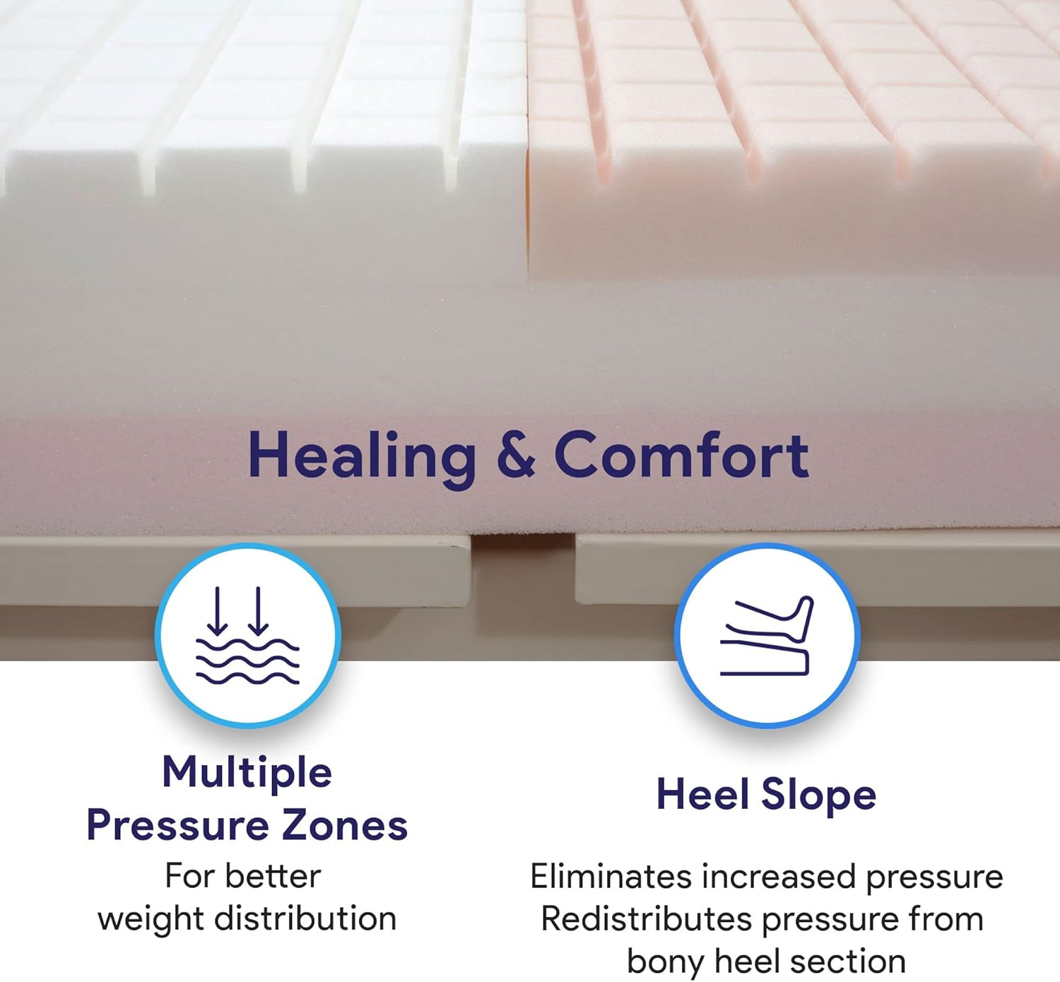 The PROEX Redistribution Foam Mattress is expertly engineered to deliver superior comfort, support, and pressure redistribution for patients at risk of developing pressure ulcers. Constructed with a 3-tiered, high-density European foam core, this mattress ensures optimal weight distribution and durability. The hospital-grade, waterproof cover is both anti-slip and easy to clean, providing a hygienic and secure sleeping surface. A 1/2 inch heel slope with visco elastic memory foam offers targeted protection for vulnerable areas, while compliance with CFR 16 Part 1633 federal fire code ensures safety. Available in multiple standard sizes, the PROEX Regular Mattress is ideal for hospitals, long-term care facilities, and home care settings, supporting patients up to 450 lbs.