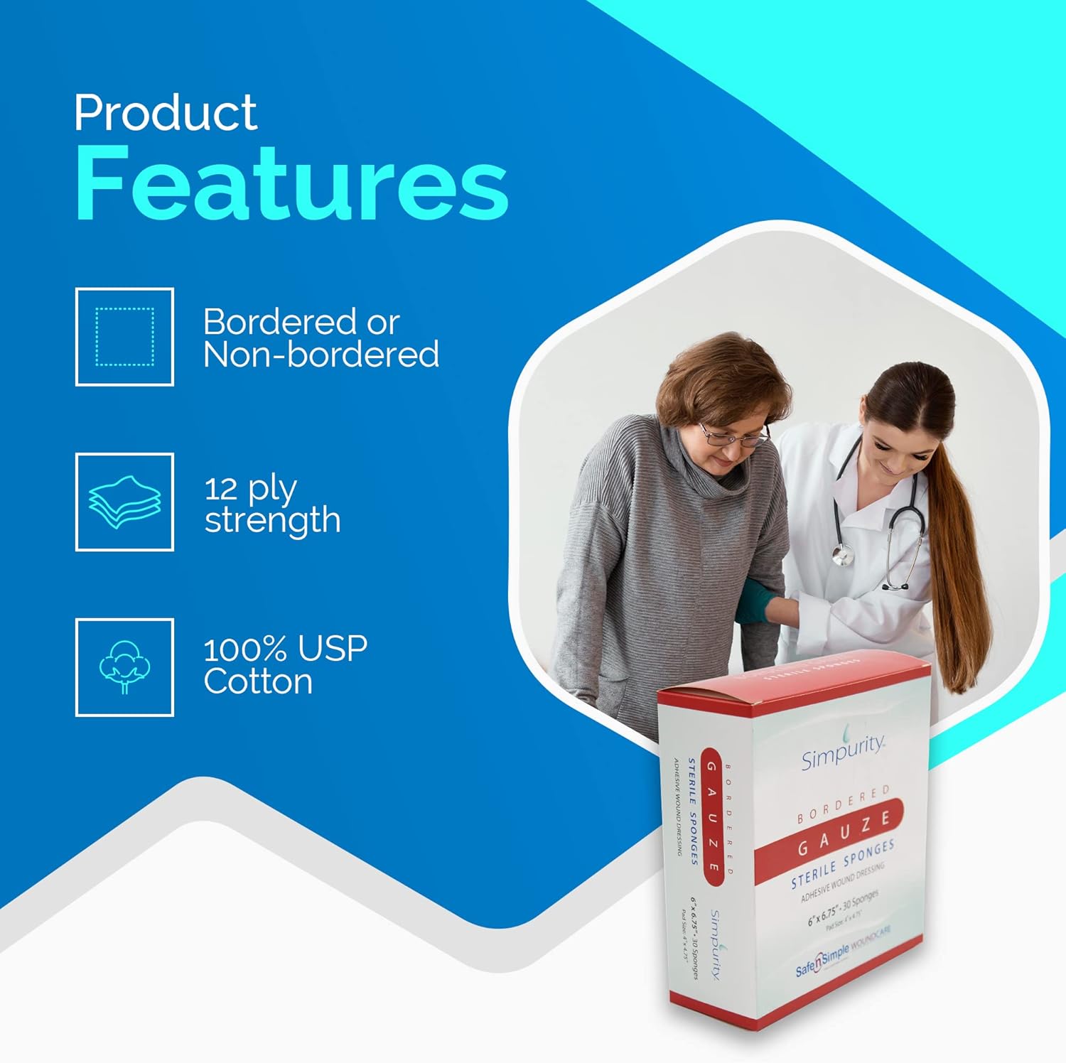 - Simpurity Bordered Gauze sterile sponges are a non-adherent gauze sponge island dressing with an adhesive border