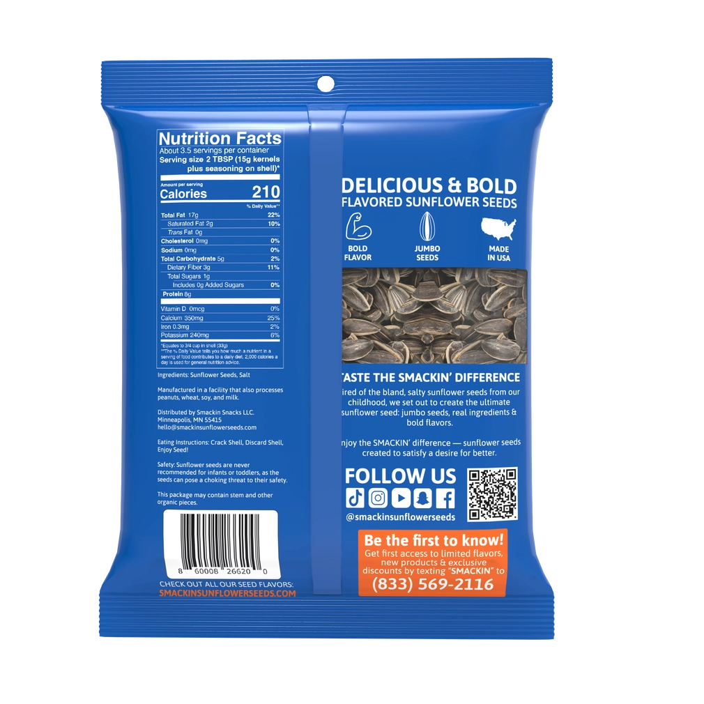 A healthier take on the classic original sunflower seed. Roasted to perfection and lightly salted, you can enjoy an entire bag of The OG without the feeling of sandpaper tongue. With only 540mg of sodium, 5g of protein and 170 calories and a dash of organic cane sugar you've got seed experience unlike any other!