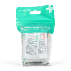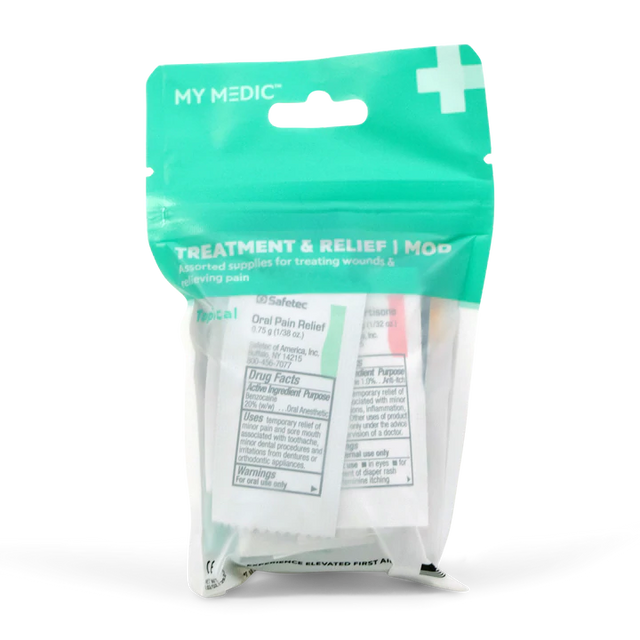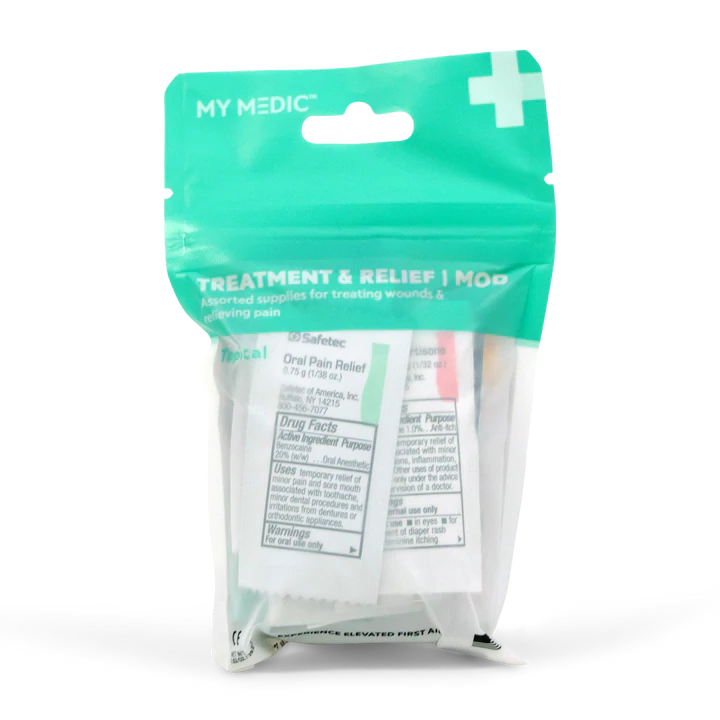 Assortment of supplies to treat wounds and relieve pain. Our MOD system is the perfect solution to re-stock or upgrade your My Medic First Aid Kit.