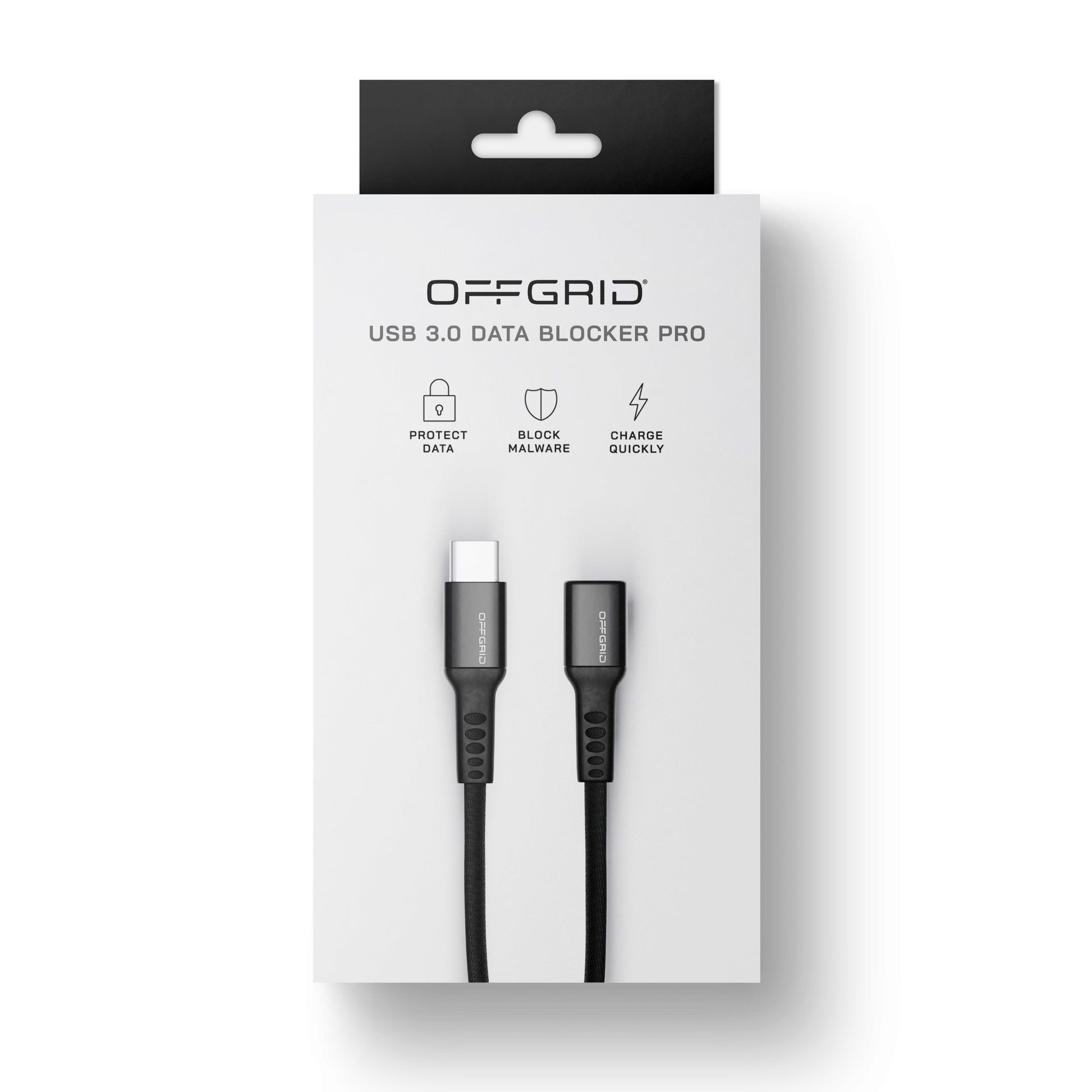 The OffGrid Type-C Data Blocker protects your device from juice jacking, a cyberattack where hackers exploit public USB ports to steal data or install malware. Compact and lightweight, it blocks data transfer while allowing fast, reliable charging. Its corded design offers flexibility for awkward spaces, making it perfect for airports, hotels, coffee shops, and more. Compatible with all Type-C devices, the OffGrid Data Blocker keeps your data secure wherever you charge.